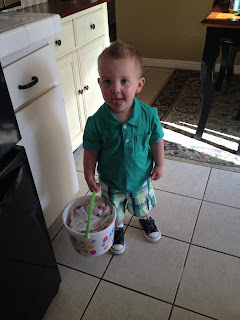 Our little family had SUCH a fun morning sharing the tradition of egg hunting with Jack. He thought it was so neat finding all the eggs in our living room and throwing them in his bucket. We then got dressed in our Sunday best and went to our church for the wonderful Easter program they prepared. The little children (primary) in our ward sang a few very emotionally touching songs about the Savior, nothing brings me to tears faster than a bunch angelic little children singing about Heavenly Father & Jesus Christ. It was just beautiful.